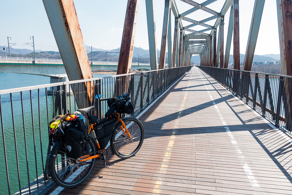 Exploring South Korea by bike in late winter was a different journey of sorts. Bicycle travel through a land deep in hibernation was filled with crisp foggy mornings, temperatures sucking the mercury down to well below zero Celsius that until midday, and minimal precipitation. Most days, the sun was bright, the air was cold, and there was no snow or rain to speak of — thank goodness. Being off-season, following the Four Rivers bikeways, I usually had the bike paths to myself. It was pure solitary cycling bliss.
