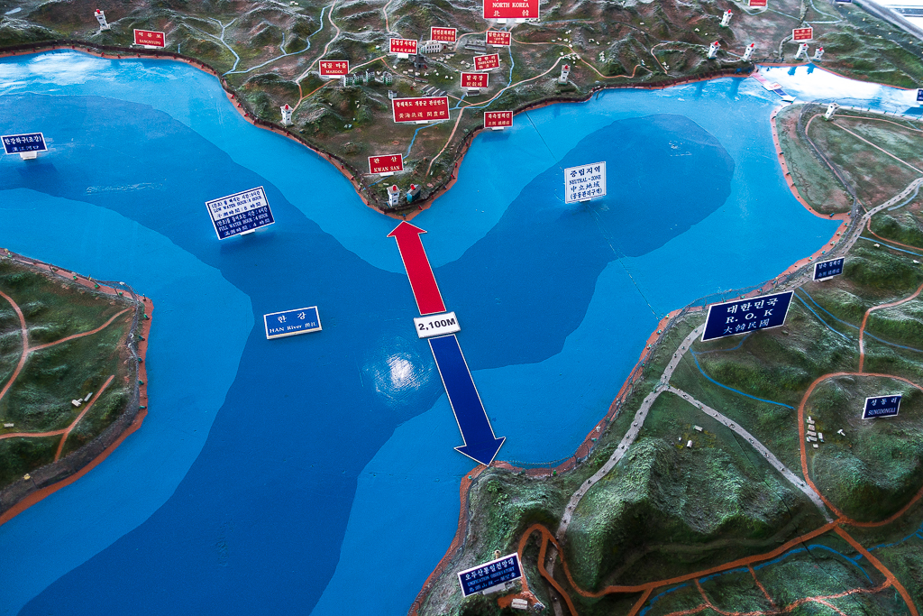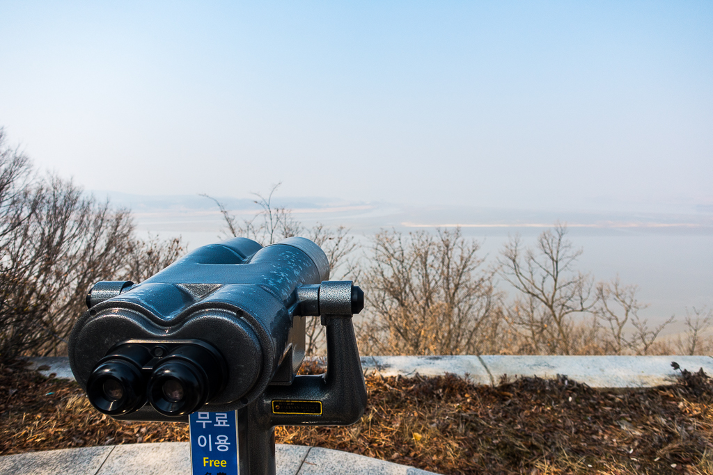 Upon on the border at the Odusan Observatory, I had a chance to peer across the Imjin River into the Hermit Kingdom and capture my first ever glimpse of North Korea. Not too much to see, just farmland, a couple of small towns, and lots of guard towers strung out along the miles of double-walled concertina fence located on either side of the Imjin River. As I peered through the binoculars, I wondered if they were looking back at us.