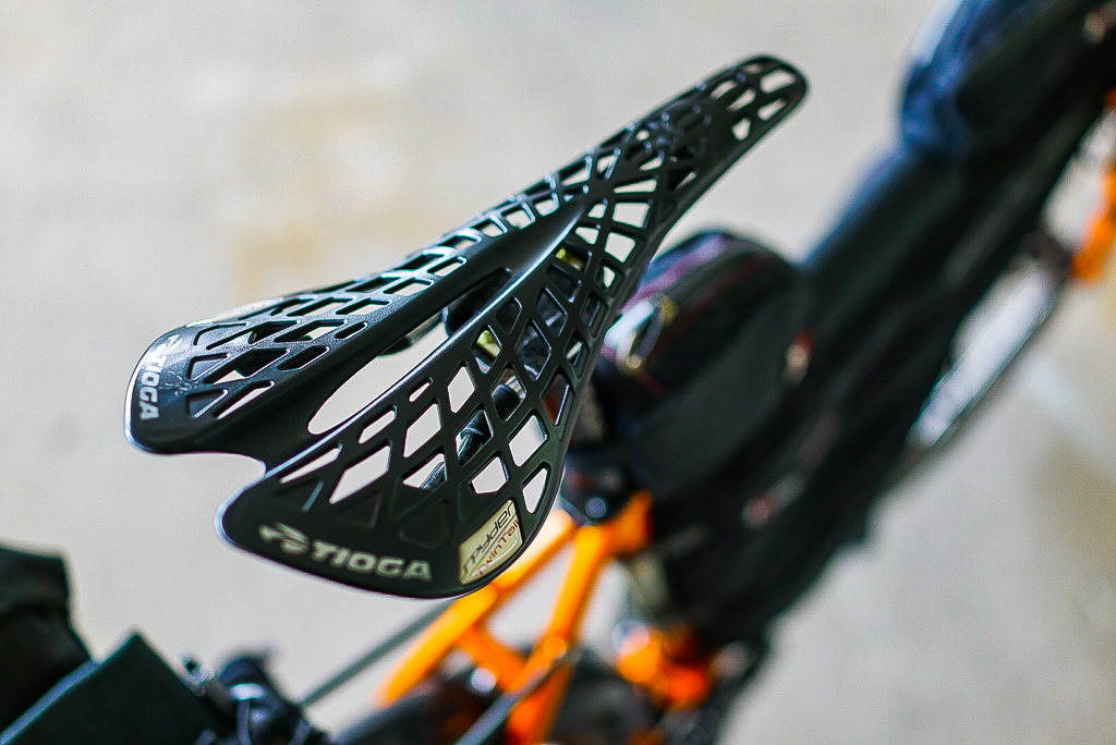 The Co-Motion Divide is tuned-up, adjusted, and purring like a kitten. The new Jones Gnarwal adds a little more riding comfort and the ability to get aero and under the wind a bit. The Tioga Spider saddle is impervious to rain and comfortable to ride on all day when paired with chamois lined undershorts.